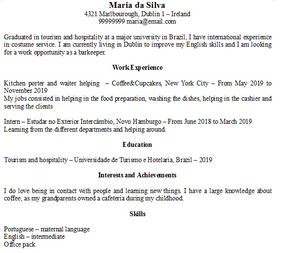 Faça um currículo e uma cover letter para cada lugar que deseja trabalhar. O perfil que os responsáveis pelo recrutamento de um restaurante procuram, vai ser bem diferente do perfil que o empregador de uma loja busca, então coloque suas habilidades e experiências adequadas para cada local.