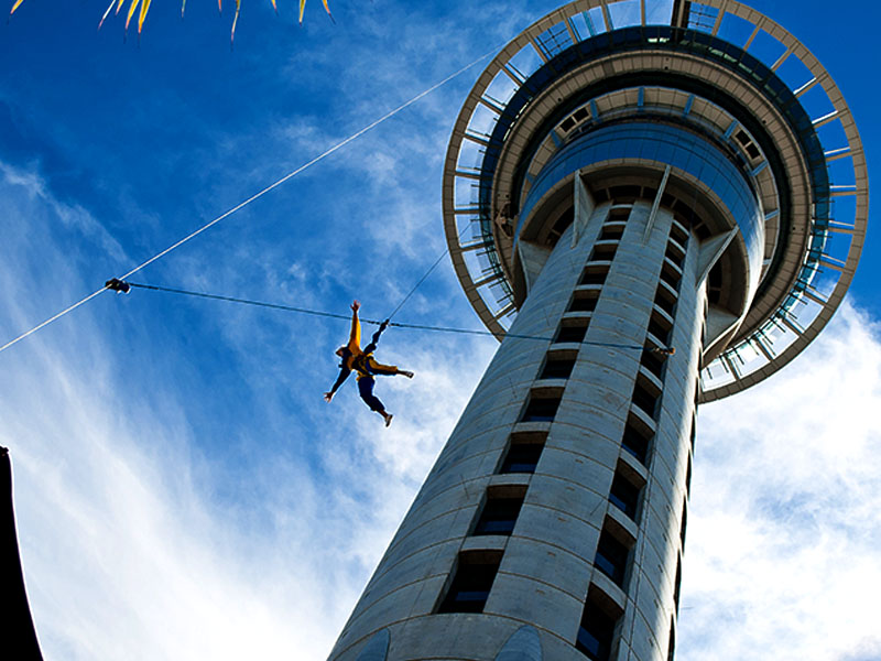 A Sky Tower com seus 328 metros, é um ponto turístico que deve ser visitado não só pelos aventureiros, as atrações por lá vão desde restaurante que gira 360°pra você não perder nenhum ângulo da cidade, cassino, até salto de Bungee Jump no nível da Sky Jump aos 194 metros de altura. Mas se acha que a Sky Jump é adrenalina demais pode começar pela Auckland Harbour Bridge e seus 40 metros, se preferir algo totalmente inusitado experimente o Zorbing, que é diferente de tudo que já viu .